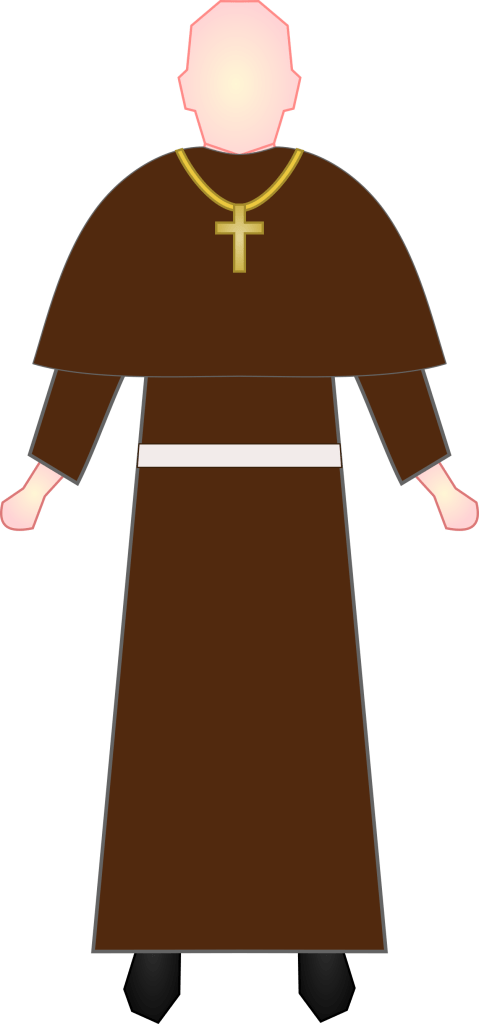 Later hermits developed Rules of Life for communities and groups to live by, and many religious orders were named after their founders: Augustinians, Benedictines, Franciscans, Clarisses, Dominicans, Bridgettines, and others. Some of these religious orders are monastic, which usually means they live and work together in one place, such as a monastery (for men, which is ironic because monastic comes from “alone”, referring to the first monastics being hermits) or convent (“convened, assembled”, for women)–monks and nuns (originally from “older women”) are monastic. Others are mendicant (“begging”), which usually means they live and work outside “in the world”, moving from place to place and relying on the charity of others rather than personal or communal wealth–friars (“brothers”) and women in consecrated religious life who aren’t nuns are mendicant. Whether monastic or mendicant, lay men in religious life are addressed as “Brother” and lay women in religious life are addressed as “Sister”.